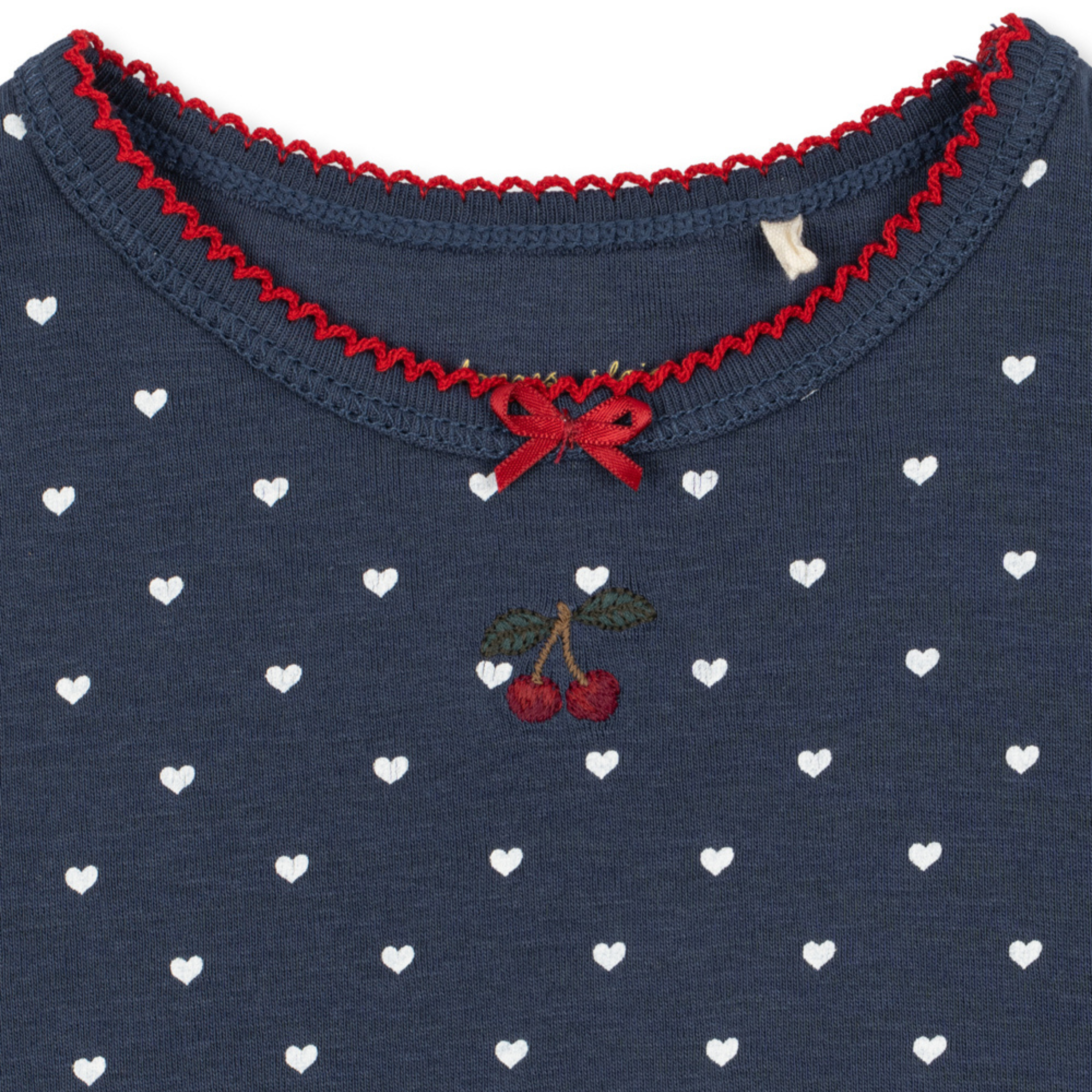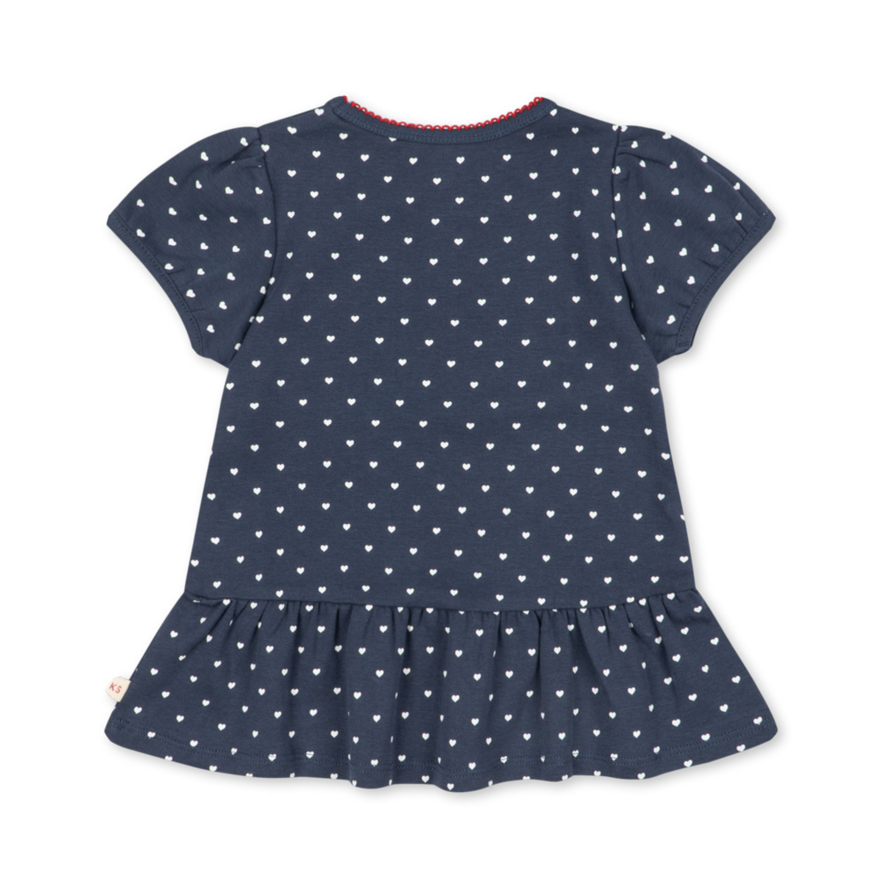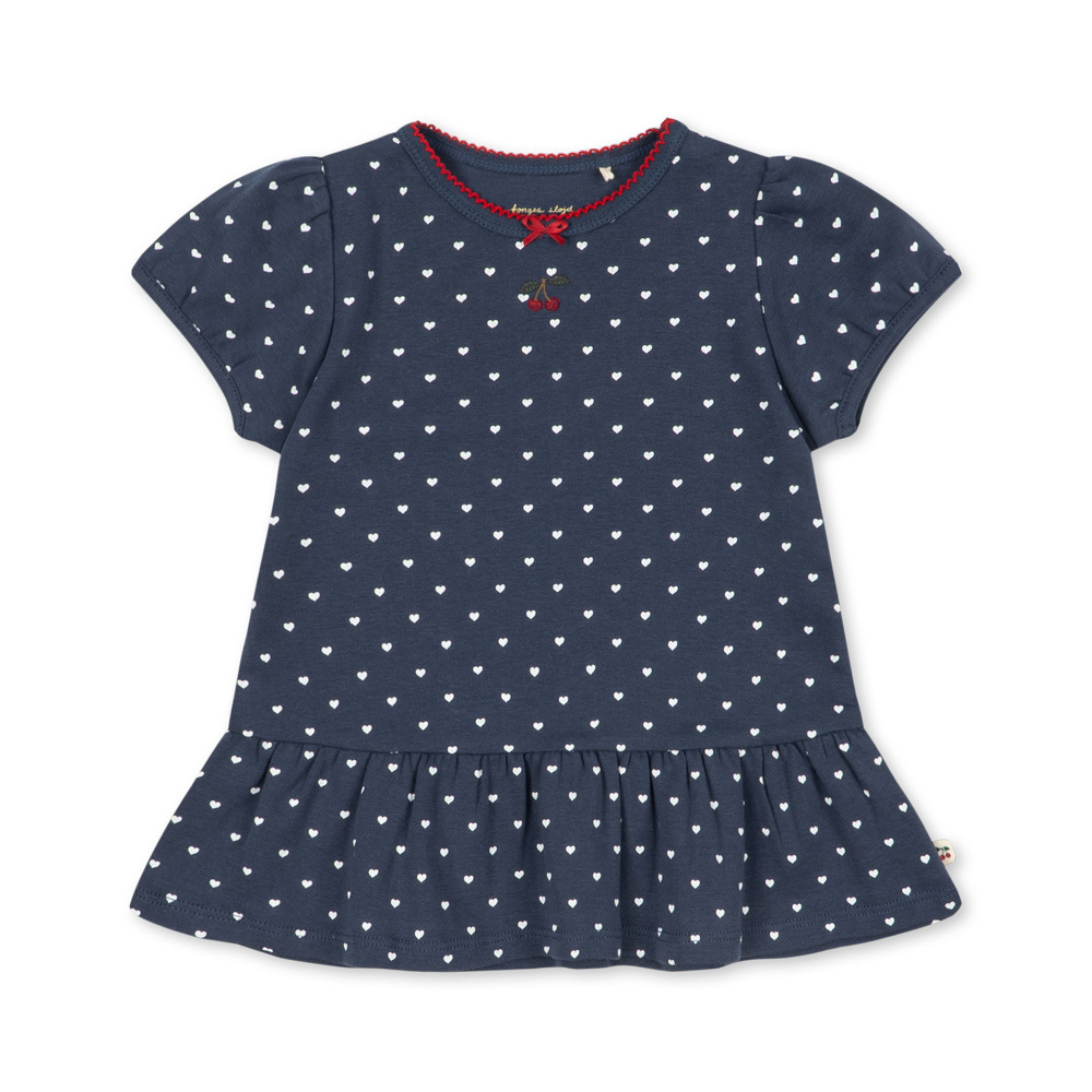 Organic cotton tee with short sleeves and a decorative puff effect at the shoulders. Designed with a peplum silhouette.