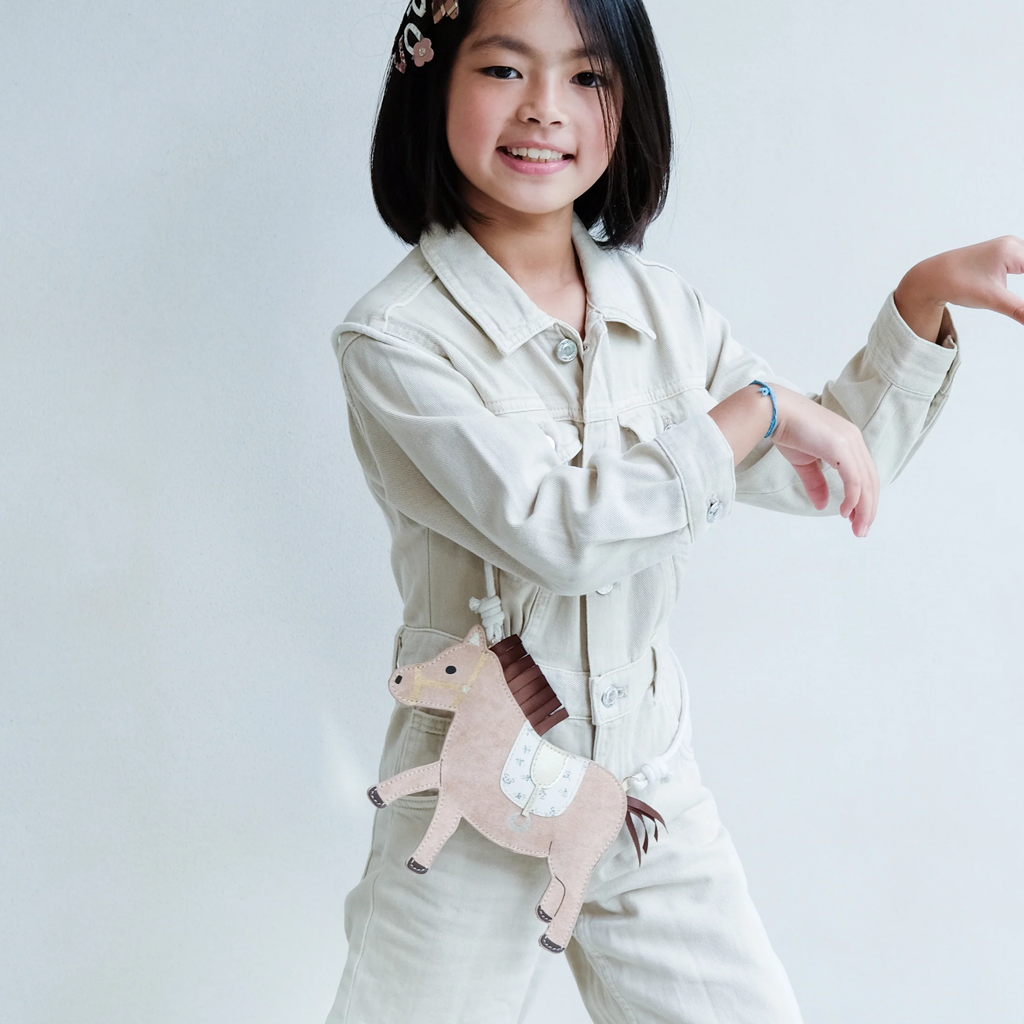 This beautiful bag is crafted from the softest suedette fabric, complete with floral print saddle cloth and a grosgrain ribbon tail and mane, this charming little bag would make a wonderful gift for any pony fan!