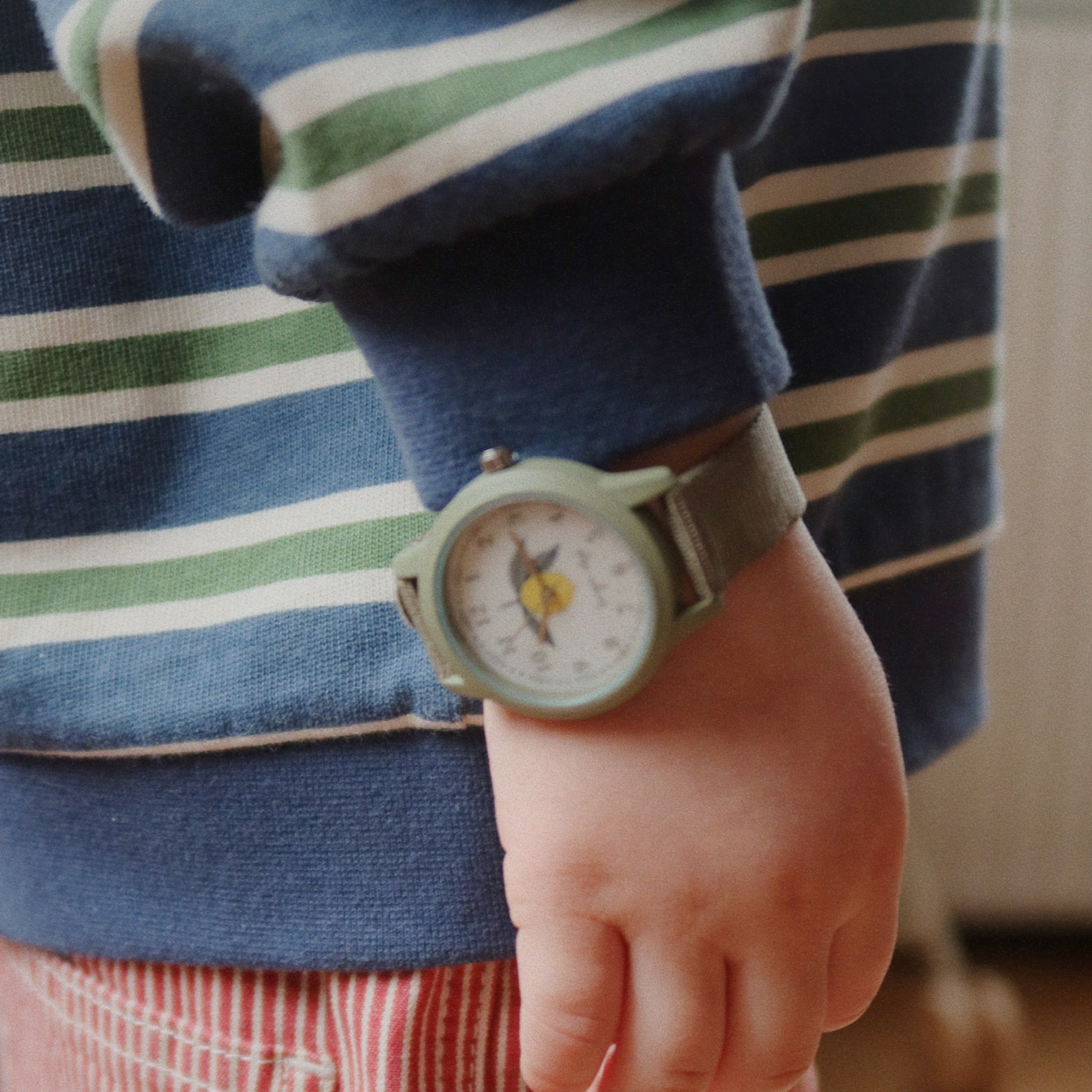 With this cute kids wrist watch, it's easy to tell the time. The hour and 5-minute steps are marked and the rest is outlined with dots. Designed with three-hand movement, soft fabric wristband, and an adjustable steel buckle.