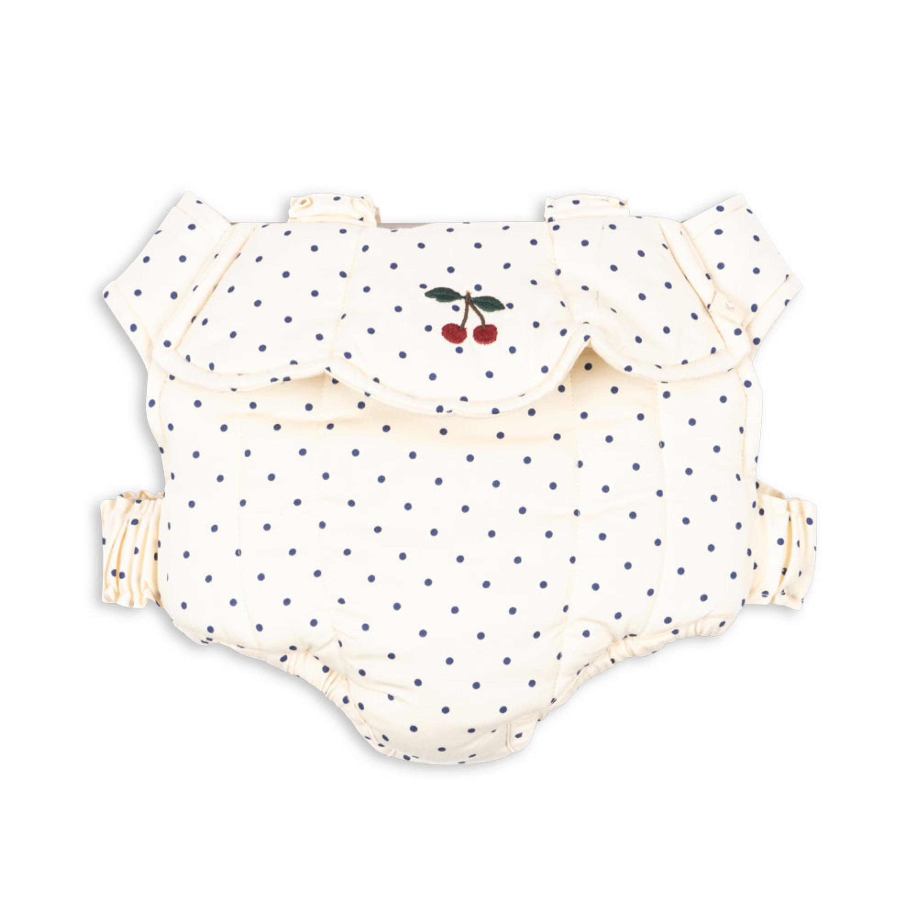 The beautiful Konges Slojd Doll Carrier is designed with elasticated straps and scallop-shaped endings. The carrier is easy to use, comfortable and lightweight.