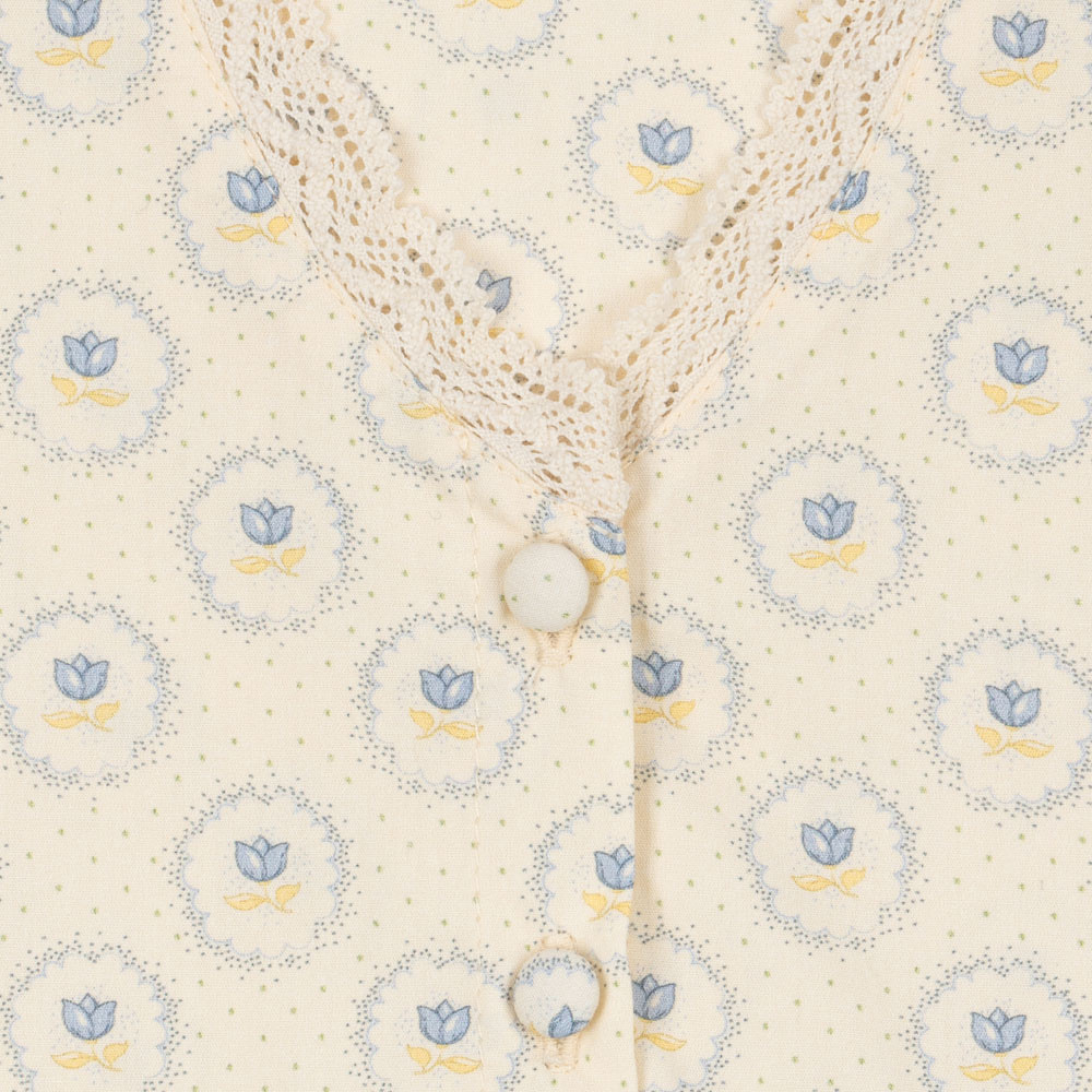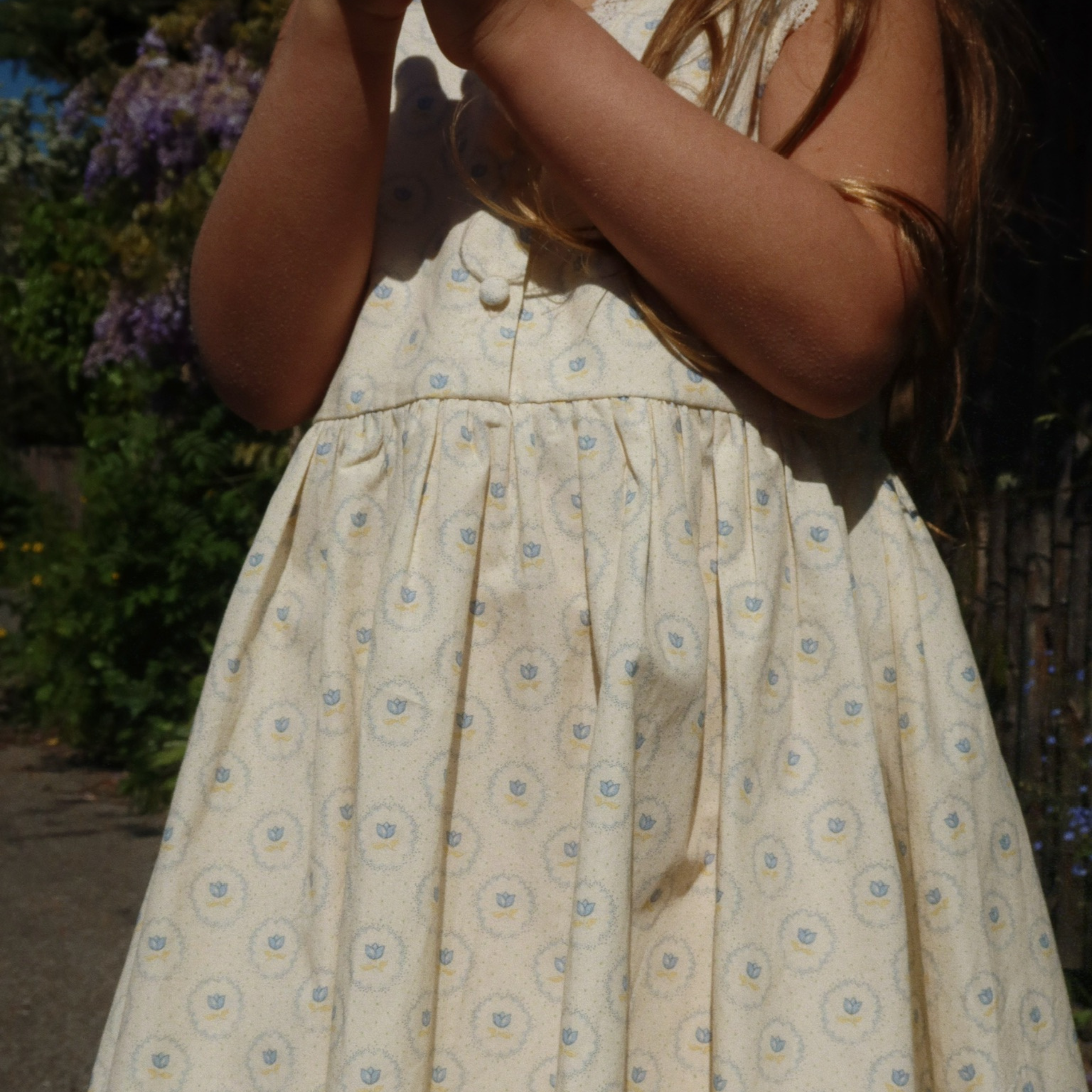 Coeur is the perfect summer dress filled with the daintiest details. The dress is designed with charming lace trim along the hems, a decorative V-neck cut, and fabric covered buttons in the front.