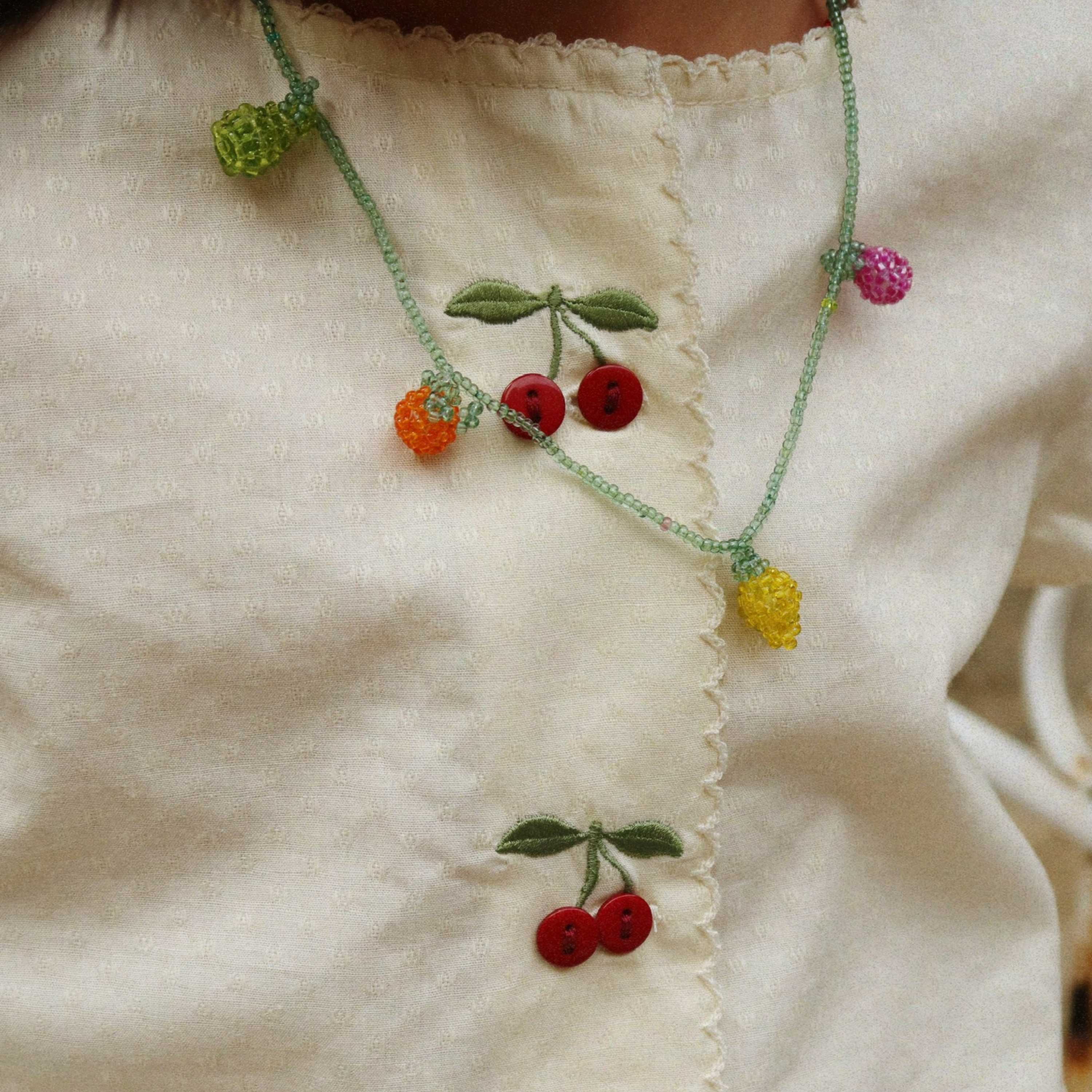 Evia Cherry Dress - Cloud Cream
