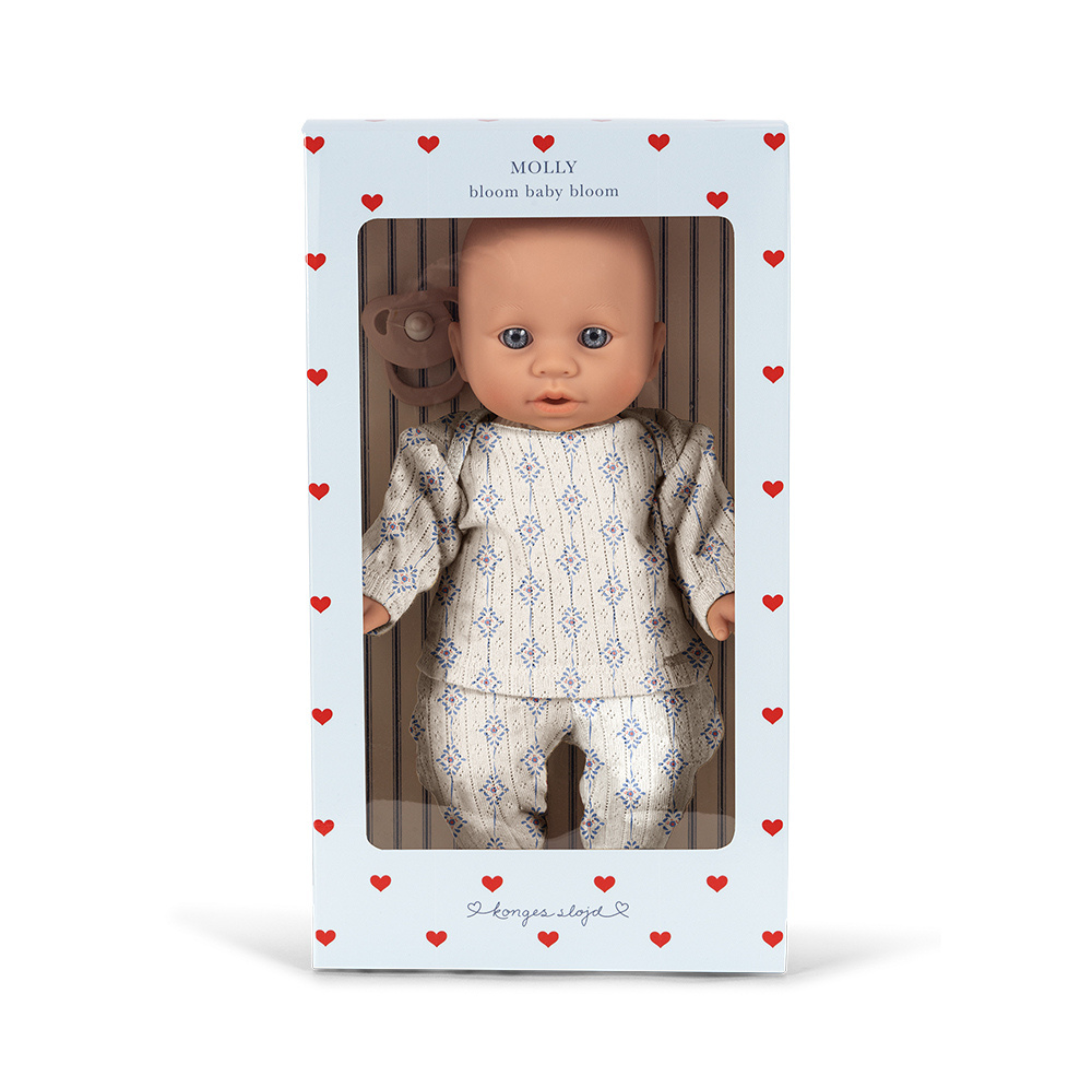 Easy for the child to take on and off. Includes a pacifier to gently soothe the doll.